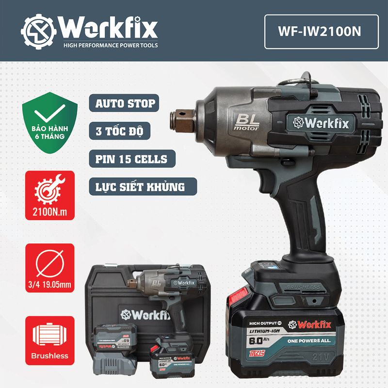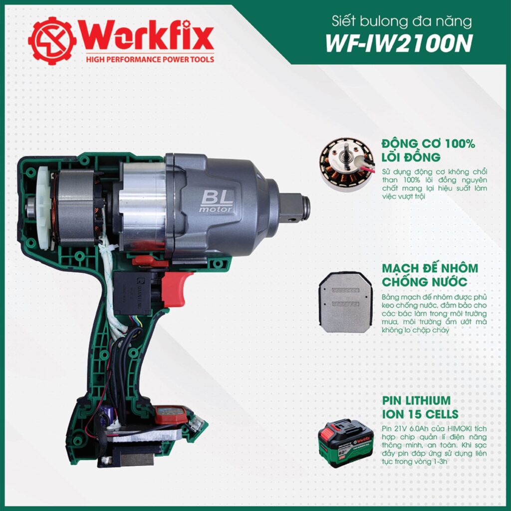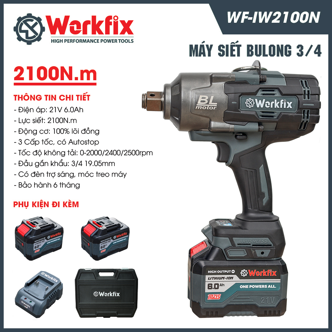 MallMáy Siết Bulong Workfix WF-IW2100N Chuyên Vặn Mở Vặn Ốc Xe Kéo, Xe Tải