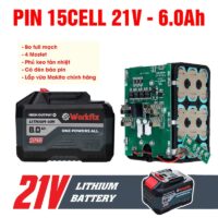 - Pin công nghệ LITHIUM ION 21V – 6.0Ah và mạch bảo vệ pin 4 mosfet cao cấp bảo vệ quá tải, bảo vệ quá mức, bảo vệ ngắn mạch giúp máy làm việc ổn định, an toàn hiệu suất cao đem lại thời gian hoạt động lâu hơn 35% lên đến 4-5h