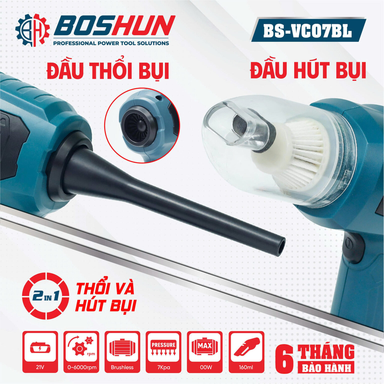 Máy Thổi Hút Bụi Boshun BS-CV07L Dùng Pin Tự Chỉnh Lực – Max 7KPA