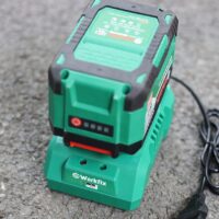 Kèm theo máy là bộ sạc bàn nhanh sử dụng nguồn điện 220v, chip quản lý dòng điện thông minh tự động ngắt khi pin đầy và sạc đầy mỗi pin chỉ hơn 1h