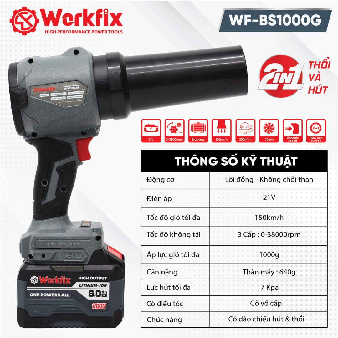 MallMáy Thổi Phản Lực Workfix WF-BS1000G – 2 IN 1 – Vừa thổi Vừa hút